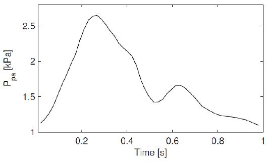 La presión dentro del alvéolo es clave para lograr difundir oxigeno a la sangre. Su valor sube con cada inhalación y baja en el proceso de exhalación como indica la curva: