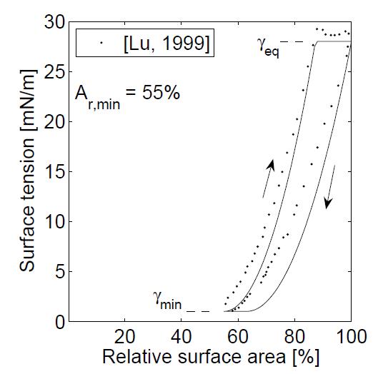 La tensi n superficial del alv olo ha sido medida siendo una funci n de la superficie alveolar relativa