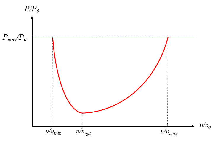 • A maximum power point occurs at high speeds, resulting in higher energy consumption for faster flight. Once again, wing shape is crucial to achieve high speeds, which characterizes birds of prey. Typically, bird wing designs are optimized for either hunting or migration, with only a few species utilizing both strategies.