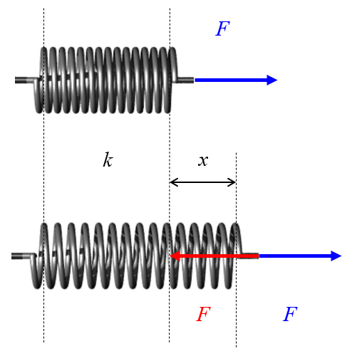 Die von einer Feder erzeugte Kraft ist direkt proportional zu ihrer Dehnung. Die Proportionalitätskonstante wird als Federkonstante oder Hooke-Konstante bezeichnet. Ebenso wird das Verhältnis dieser Kraft als Hooksches Gesetz bezeichnet.