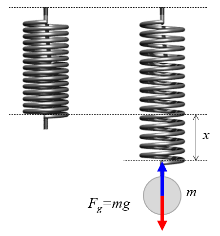 Um zu untersuchen, wie sich die Feder dehnt, kann sie vertikal aufgeh ngt und schrittweise mit bekannten Gewichten belastet werden.