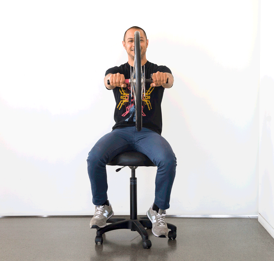 An example of this is a rotating chair. This exercise can be done with extended legs and arms, attempting to rotate in the same direction, or with an object that is rotating and an attempt to alter its angular momentum, which generates an opposing angular momentum in the support:
