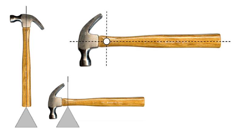 This concept implies that for any orientation of an object, a point of support can be located, at which the object is in balance. Each of these points corresponds to a vertical line. By repeating this process with different orientations of the object, it eventually becomes evident that the vertical lines intersect at a particular point within the object. This point is referred to as the center of mass (CM). In essence, the center of mass is the unique point within the object where, regardless of its orientation, equilibrium is always achieved.