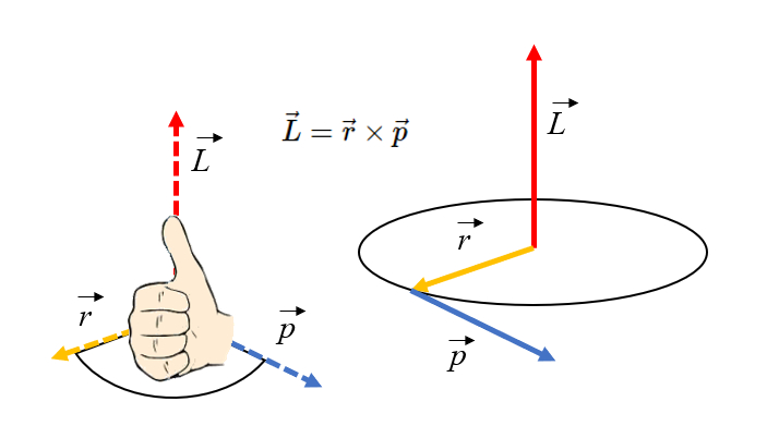 Die Ausrichtung des Drehimpulses kann mithilfe der Rechte-Hand-Regel bestimmt werden: Wenn du deine Finger in Richtung des Radius zeigst und dich in Richtung des Moments drehst,