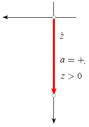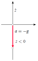 When using a coordinate system with positive z-axis pointing upwards, gravity corresponds to a process of acceleration in the downward direction:
