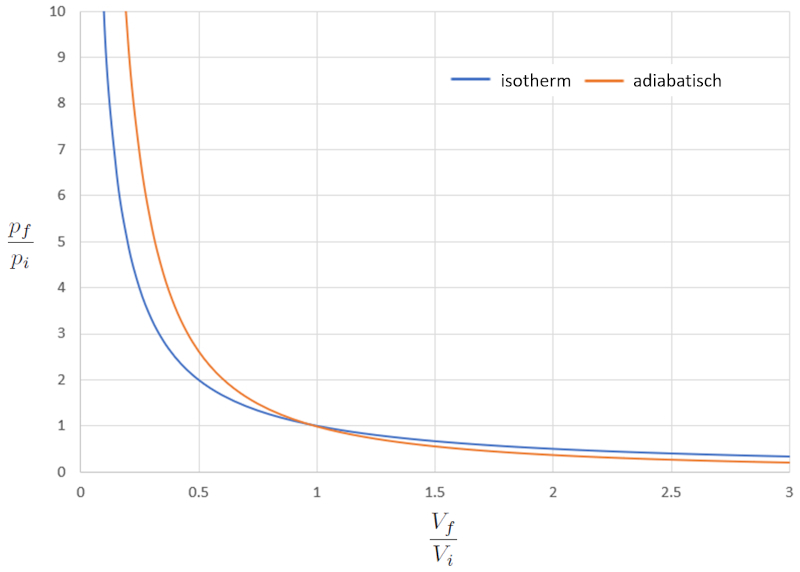 Vergleich des isothermen und adiabatischen pV-Diagramms