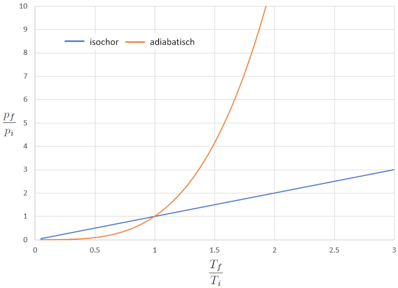 Vergleich des isochorisch und adiabatischen pT-Diagramms
