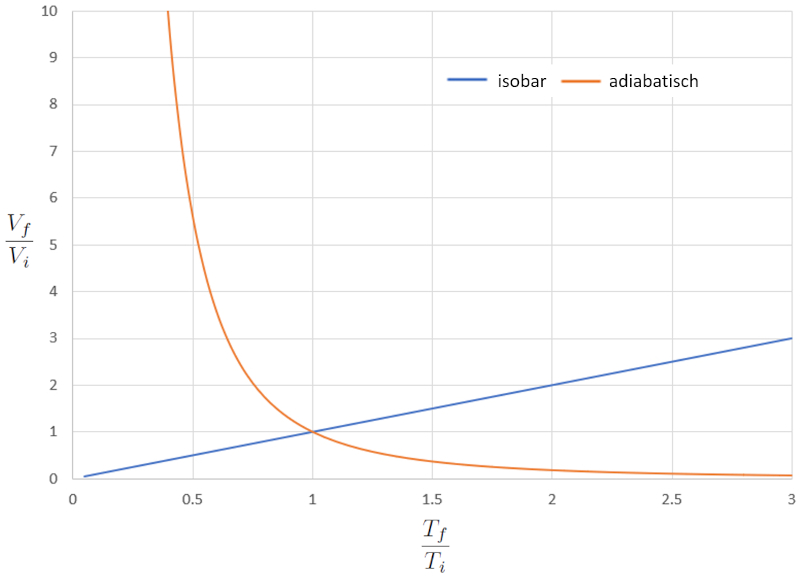 Vergleich des isobarisch und adiabatischen VT-Diagramms