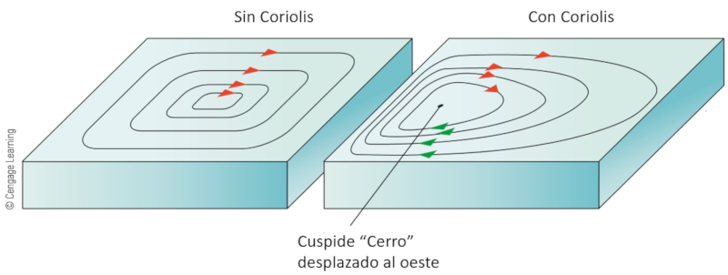 Al simplificar las ecuaciones de la ley de Coriolis se obvian movimientos fuera del plano. Sin embargo para movimientos de masas de agua estos si pueden existir y generar aceleraciones hacia la superficie que con