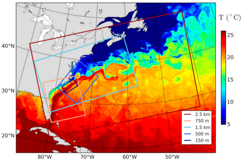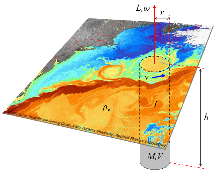En situaciones en que corrientes de distinta temperatura interactuan se forman v rtices mediante la separaci n de reas de la corriente principal que por el movimiento relativo de las corrientes giran. Estos v rtices presentan inercia que hace que tiendan a mantener su forma y viajen en una de las corrientes largos recorridos antes de desarmarse.