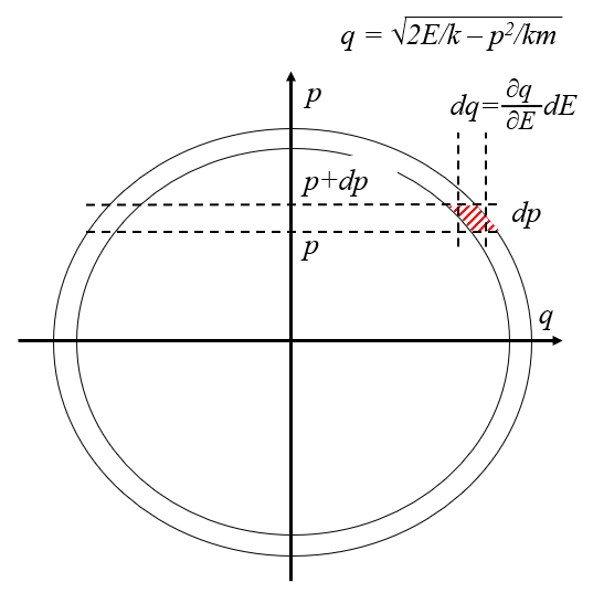 $2 \pi (E + dE)\sqrt{\displaystyle\frac{m}{k}} - 2 \pi E \sqrt{\displaystyle\frac{m}{k}} = 2 \pi E \sqrt{\displaystyle\frac{m}{k}}$