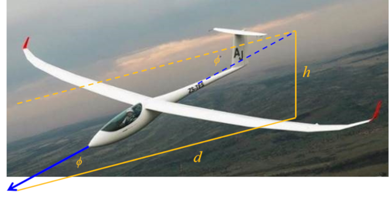 Anstelle von der Anstellwinkel eines Flügels ($\alpha$) werden wir mit der Gleitwinkel ($\phi$) arbeiten.