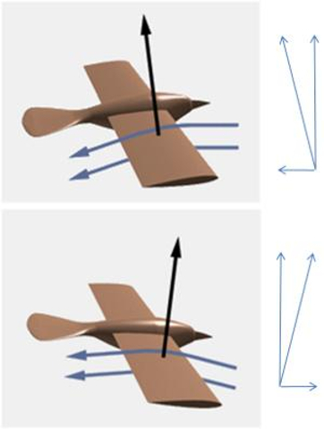 Wenn das Objekt (Flugzeug / Vogel) einen leicht negativen Anstellwinkel beibehält, kann ein Teil der Auftriebskraft durch Gegenwirkung zum Boosten beitragen. Im Durchschnitt ist der verbleibende Auftrieb nicht viel geringer als die Schwerkraft, das Objekt wird lange in der Luft gehalten. Sie können von einem extrem langsamen kontrollierten Abstieg oder Gleiten sprechen.