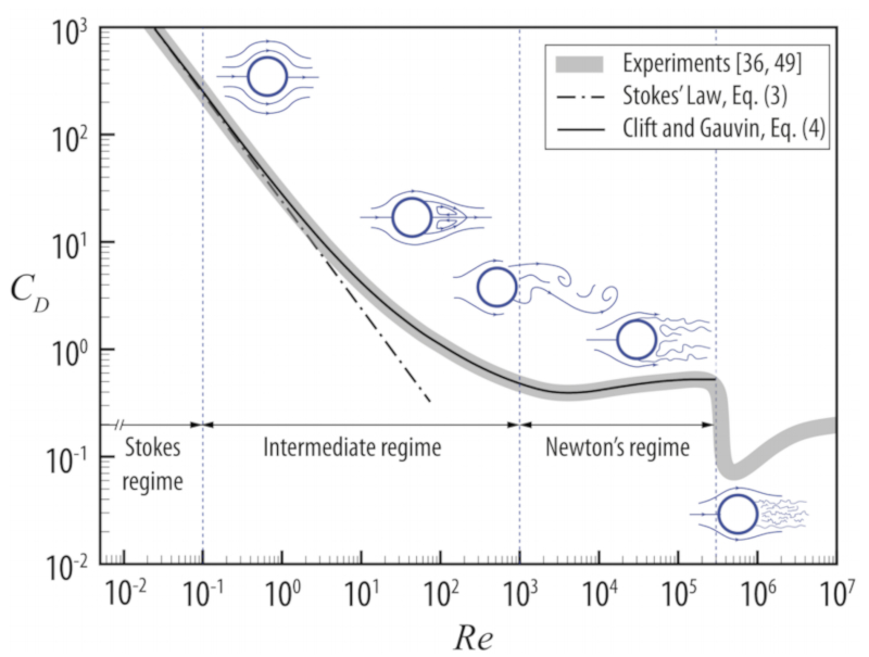 Der Widerstandsbeiwert $C_w$ ist oft eine Funktion der Reynoldszahl $Re$. Im Fall einer Kugel hat der Widerstandsbeiwert die Form: