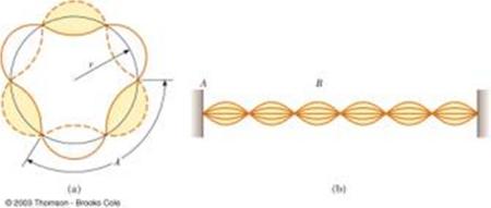 Como el per metro de una rbita tiene un largo $2\pi r$, donde $r$ es el radio de la rbita, y la funci n de onda $\lambda$ que describe al electr n debe tener un largo de onda tal que un m ltiplo entero $n$ de esta debe ser igual al per metro: