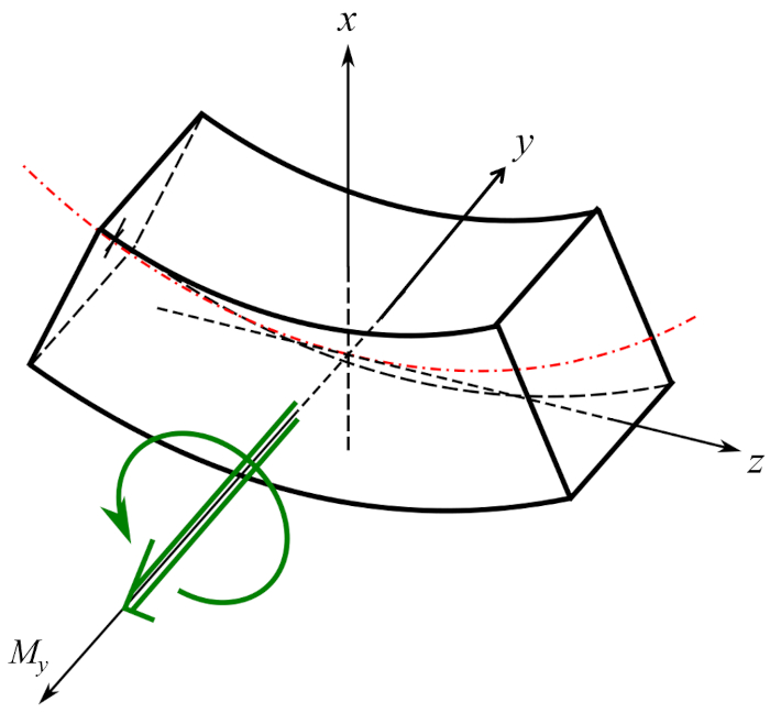 | $ M_y = - E I_b \displaystyle\frac{d^2 u_z }{d x ^2}$ |