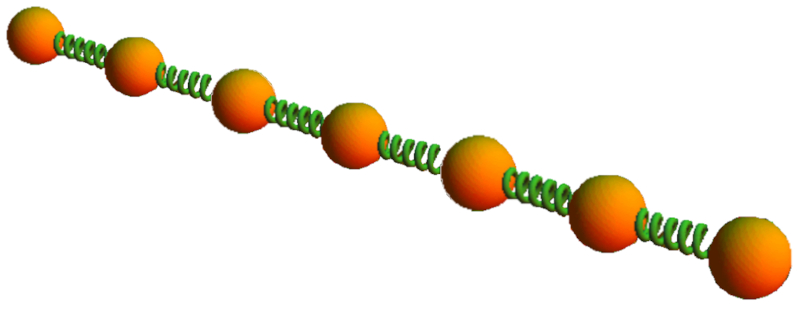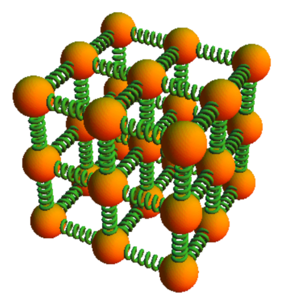 No limite de pequenas deformações, onde as forças entre os átomos do sólido são proporcionais à distância do ponto de equilíbrio, o sólido pode ser modelado como uma série de massas interconectadas por molas.