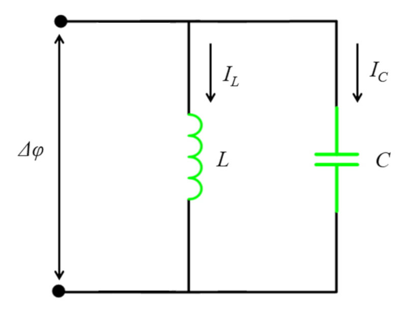 Si se conecta una inductancia y capacitancia en paralelo con los respectivas ca das de potenciales lo que se muestra en el siguiente diagrama: