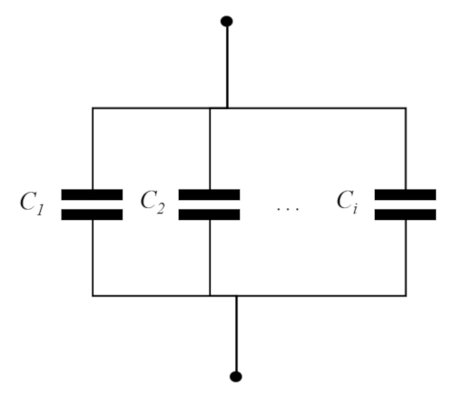Bei parallelen Kapazitäten ist die angelegte Potentialdifferenz für alle Kondensatoren gleich: Da die Potentialdifferenzen gleich der durch die Kapazität geteilten Last sind, ist die Ladung jeder Kapazität gleich dem Produkt der Potentialdifferenz durch die Kapazität . Da die Gesamtlast gleich der Summe der Lasten in jeder Kapazität ist, wird erhalten, dass das Gesamttraining gleich der Summe der einzelnen Trainings ist.