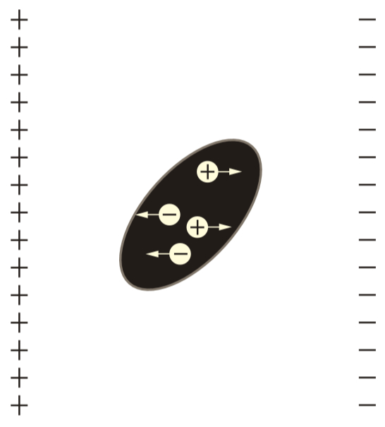 En el caso de los aislantes las cargas no se desplazan lo que lleva a que el material no puede ser polarizado. En los conductores las cargas se desplazan polarizándose modificando el campo. Las capacitancias por lo general tienen materiales dieléctricos entre las placas que son capaces de polarizarse aumentando la capacitancia.