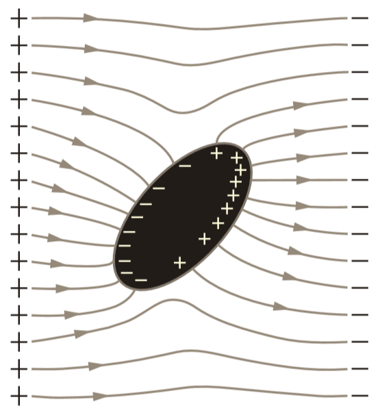 Con el cuerpo polarizado el campo se modifica interrumpiendo se las lineas de campo originales 'se cortan' y