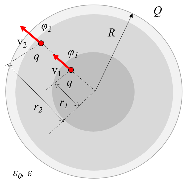 el campo en dos puntos debe poseer la misma energ a. Por lo tanto, las variables la carga ($Q$), la masa de la partícula ($m$), la velocidad 1 ($v_1$), la velocidad 2 ($v_2$), y el potencial eléctrico 1 ($\varphi_1$) seg n la ecuaci n: