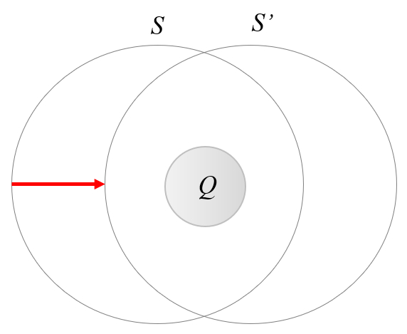 In Gaussschem Gesetz ist die Wahl der Oberfl che um die Ladung herum willk rlich. Dies bedeutet, dass bei einer Bewegung einer Ladung immer eine Gau sche Fl che gefunden werden kann, sodass ihr Integral unver ndert bleibt. Gem diesem Gesetz bedeutet dies, dass die Ladung selbst sich nicht ndern wird:
