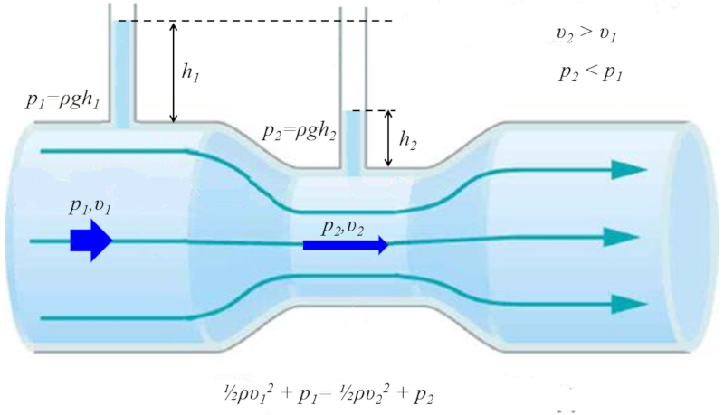 Sin la presión hidrostática, la ley de Bernoulli se reduce a que la suma de un término asociado a la energía cinética, y por ende a la velocidad al cuadrado, y la presión que existe en cada lugar, se mantiene constante. Esto significa que si la velocidad aumenta, la presión disminuye, y viceversa.