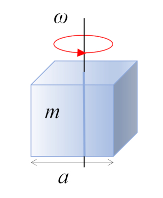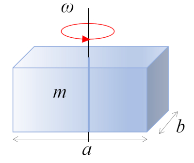 Ein rechtwinkliges Quader mit der Masse $m$ und den Seitenlängen $a$ und $b$, das senkrecht zur Rotationsachse steht, dreht sich um seinen Schwerpunkt, der sich im geometrischen Zentrum des Körpers befindet: