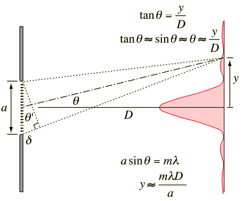 Si se modela con el principio de Huygens como una cadena de fuentes se puede estimar la interferencia y obtener la expresión del patrón de interferencia para lo que es una rendija única.
