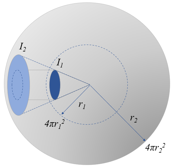 | $ I_r =\displaystyle\frac{ r_0 ^2}{ r ^2} I_0 $ |