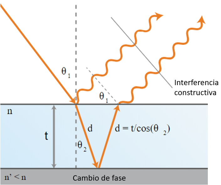 En el caso de que la reflexi n no sufra un desfase, la condici n para que exista interferencia constructiva es igual a