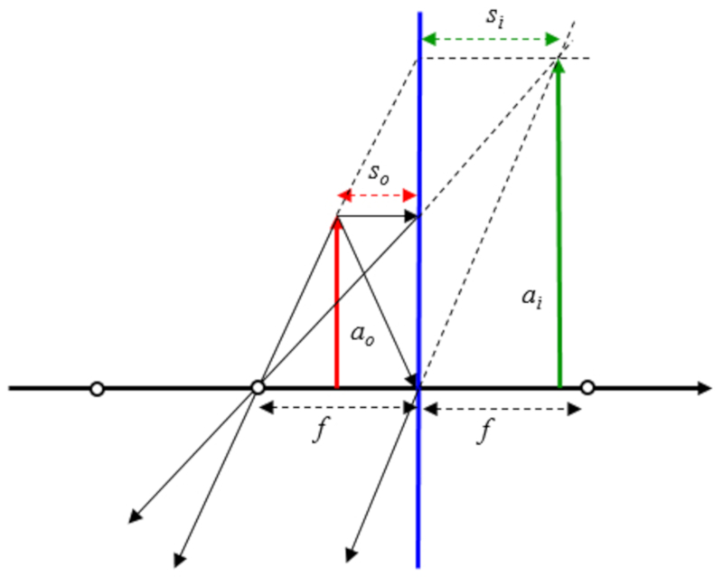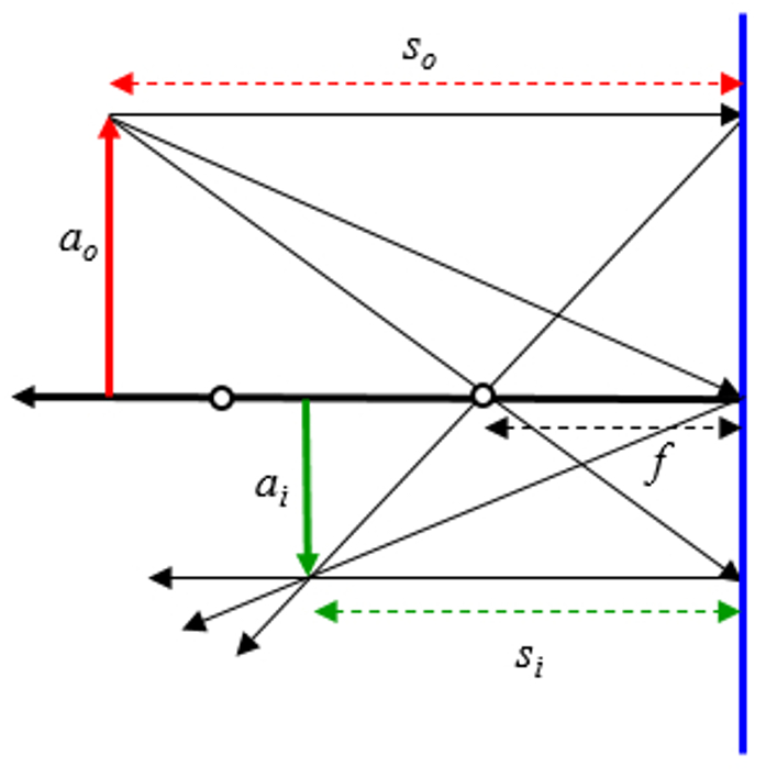 Si se asume que el objeto esta entre el origen del eje ptico y el foco se tiene: