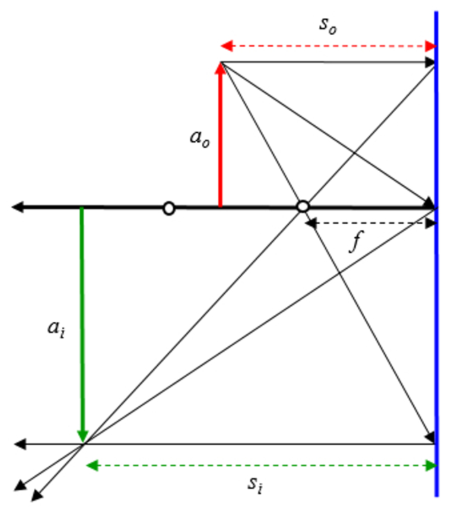 Si se asume que el objeto esta entre el origen esta mas lejos que el doble del foco se tiene: