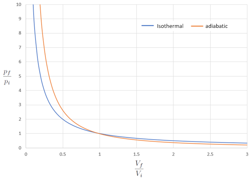 Comparison of isothermal and adiabatic pV diagram