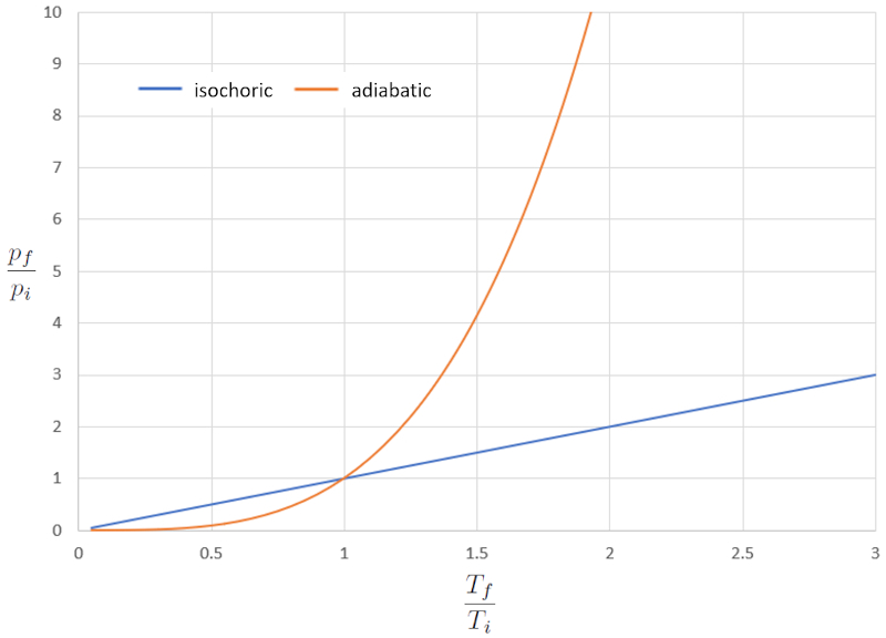 Comparison of isocoric and adiabatic pT diagram