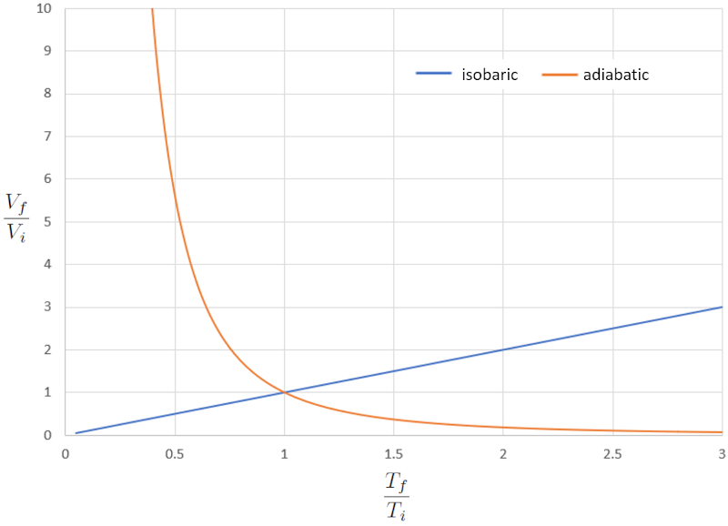 Comparison of isobaric and adiabatic VT diagram