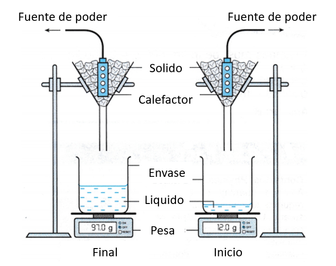 El principio de la medición del calor latente implica llevar a cabo el cambio de fase y medir la energía requerida, como se ilustra en la siguiente imagen: