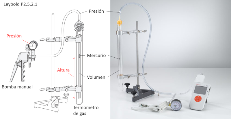 O termômetro de gás é um tubo que contém em seu interior outro tubo conectado à bomba e que possui um pequeno volume de mercúrio.
