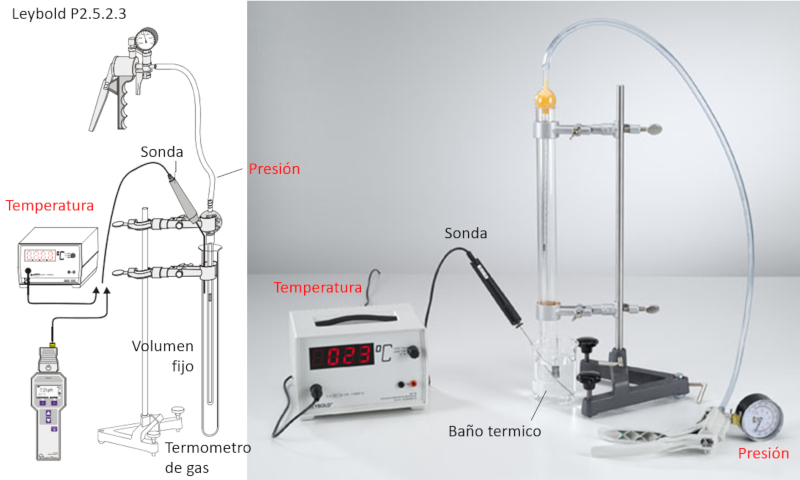 No caso de experimentos com gases, é utilizada uma câmara de vácuo para envolver o gás desejado no experimento. Em vez de usar um gás para medir a temperatura, ele é empregado para aplicar a pressão desejada.