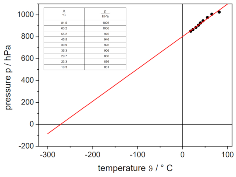 Isso ilustra a lei de Gay-Lussac, que estabelece que a temperatura $T$ e a pressão $p$ variam de forma proporcional de acordo com a seguinte relação: