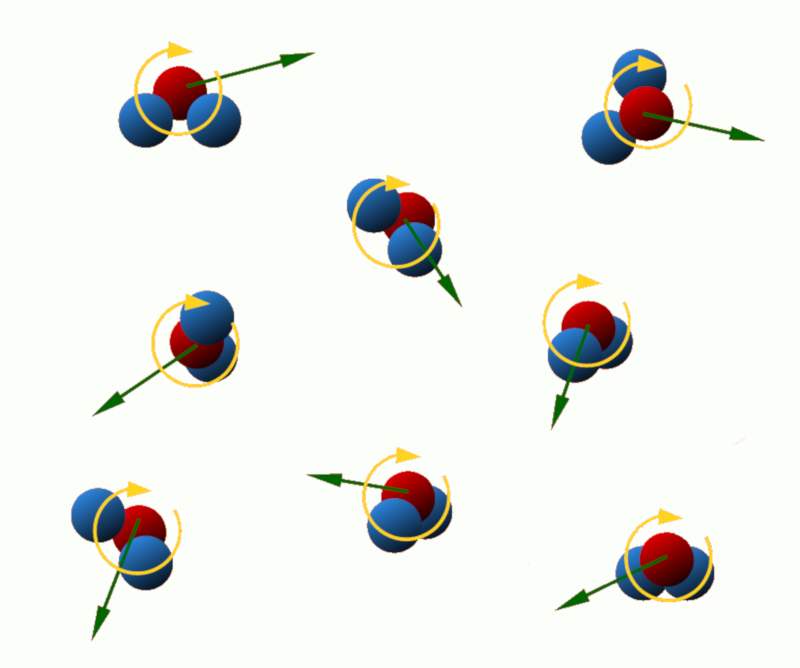 Energía cinética de rotación: Algunas partículas, como los átomos o moléculas, pueden rotar alrededor de un eje. Esta rotación está asociada con la energía cinética de rotación, que depende de la masa y la velocidad angular de las partículas.
